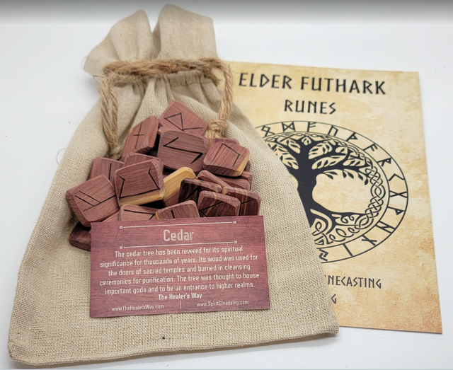 Wooden Runes Set Cedar with Carved Elder Furthark Alphabet Viking Runes for Divination and Healing… (Cedar)